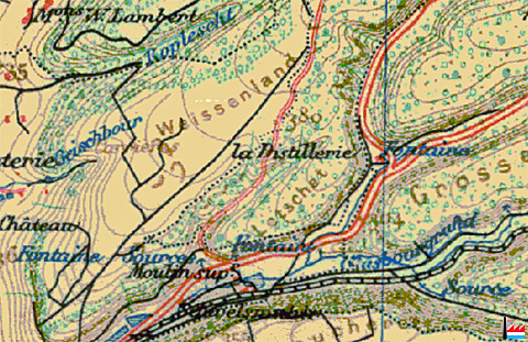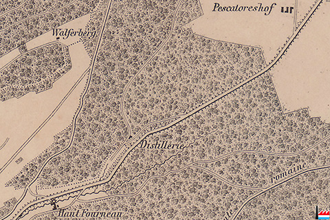 Brennerei zwischen Dommeldingen und Waldhof © Origine Administration du Cadastre et de la Topographie Luxembourg (ACT) - Extrait de la carte topographique à l'échelle 1: 50.000 édition 1927 - Autorisation de publication du 20.10.2010.»