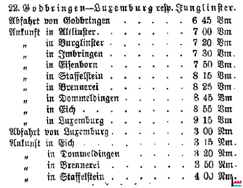 Ankunftsstunden der Postfuhrdienste ab 1. Januar 1905 (Mémorial N° 83 - 30.12.1904)