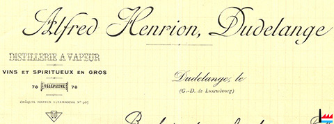 | 1922 | Distillerie à vapeur Henrion Alfred, Dudelange Téléphone 78 |