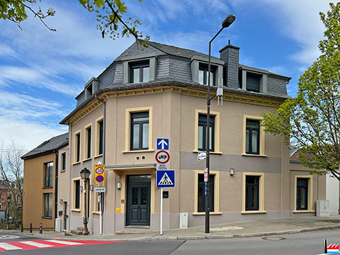 ![]() Café, Dommeldange, coin rue d'Echternach et 2 rue des Hauts-Fourneaux (Photo: 4.10.2017 jmo) |