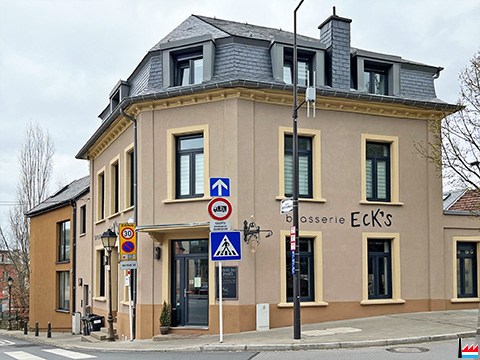 ![]() Brasserie Eck's, Dommeldange, coin rue d'Echternach et 2 rue des Hauts-Fourneaux (Photo: 6.4.2022 jmo) |
