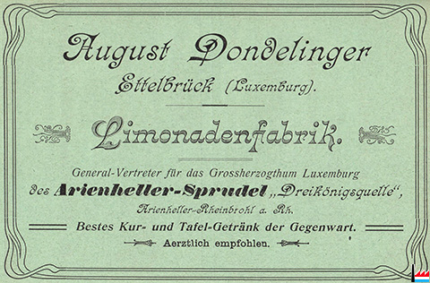 | 1904 | Fabrique de limonades - Limonadenfabrik General-Vertreter für des Großherzogtum Luxemburg des Arienheller-Sprudel Dreikönigsquelle, Arienheller-Rheinbrohl am Rhein |
