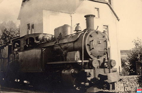Jangelis Lokomotiv virun der Schräinerei Dupont zu Uespelt