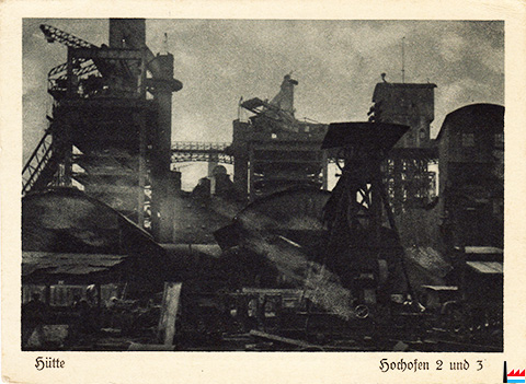 Hütte - Hochofen 2 und 3 (Carte postale: nach Aufnahmen von Br. Zwiener; Heimatverlag Oberschlesien, GmbH, Gleiwitz; Collection: industrie.lu)