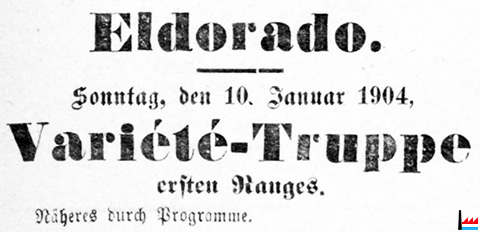 | 1907 | Theatralische Abendunterhaltung im Saale Eldorado, Inhaber Eggebrecht (aT: 13.1.1907) |