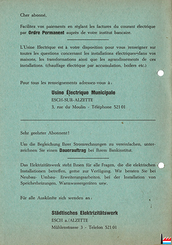 Carte-Quittance - Usine électrique municipale Esch/Alzette 1967-68 (Collection: industrie.lu)
