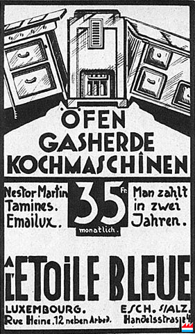 A L'Etoile Bleue: Öfen - Gasherde - Kochmaschinen Nestor Martin - Tamines - Emailux - man zahlt in 2 Jahren - Pub 20.1.1935