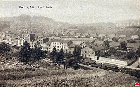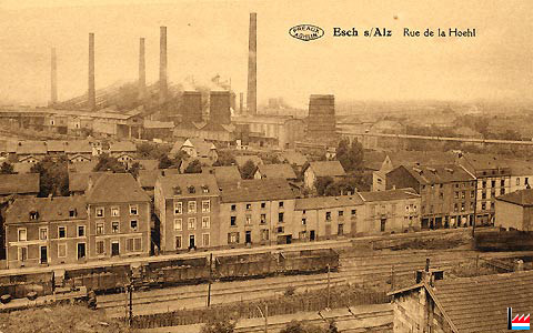 | 2 | ![]() Esch/Alzette, coin 2 rue Hoehl et rue d'Audun (Carte postale: Edit. Em. Klob, Esch s/Alz.; Collection: industrie.lu) |