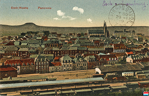 ![]() Esch Alzette - Panorama - <=1919 (Carte postale: Th. Achen, Esch, Alzette; collection: industrie.lu) |