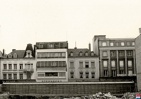 | 1965 | ![]() Esch/Alzette, rue de l'Alzette: Paul Weyler (19) - Victor Weyler (21) - Sternberg (23) - Confiserie Robert (25) - BIL (27) (Photo: 1965 François Urbany) Photo prise du chantier Centre Mercure |