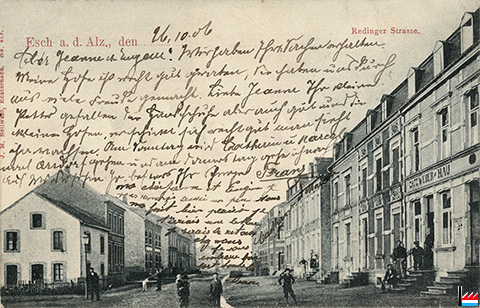 ![]() Café Weber-Hau, Esch/Alzette, rue de Rédange - Redinger Straße - vers 1904/05 (Carte postale: J.M. Bellwald, Echternach, N° 413; Collection: industrie.lu) |