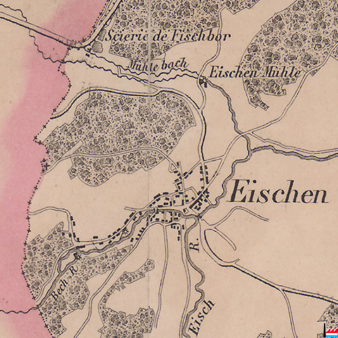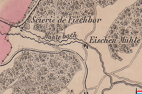 Eischen-Mühle, Eischen - Scierie de Fischbor, Gaichel (Carte Jean-Baptiste Liesch - 1862)