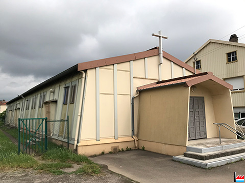 | 1938 - 1939 | ![]() L'église métallique préfabriquée Sainte-Barbe à Crusnes, architecte Claude Robbe, édifiée par Constructions métalliques Fillod (CMF), Florange de 1938 - 1939 pour la S.A. d'Errouville (de Wendel), société des mines de fer de Crusnes (Photos: 20/21.7.2020 jmo) |