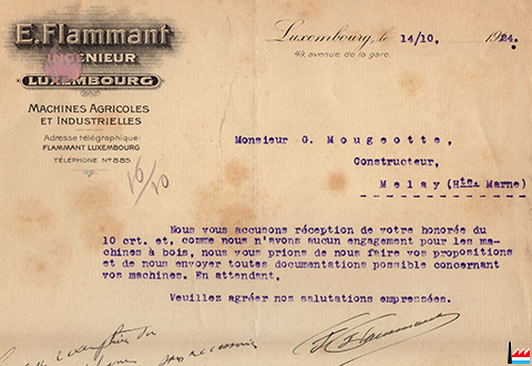 | <=1905, 1924 | E. Flammant, ingénieur 49, avenue de la Gare Luxembourg machines agricoles et industrielles |