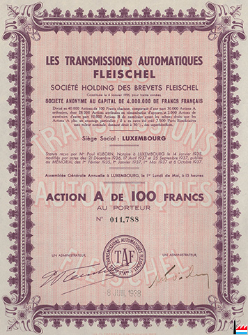 | <=1939 | Transmissions automatiques Fleischel Société Holding des Brevets Fleischel 3 avenue Monterey, Luxembourg |