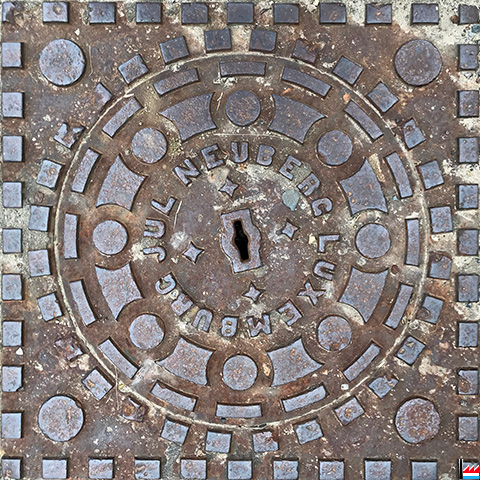 ![]() Kanaldeckel Jul. Neuberg, Luxemburg (Photo: 8.8.2019 Serge Pletgen) |