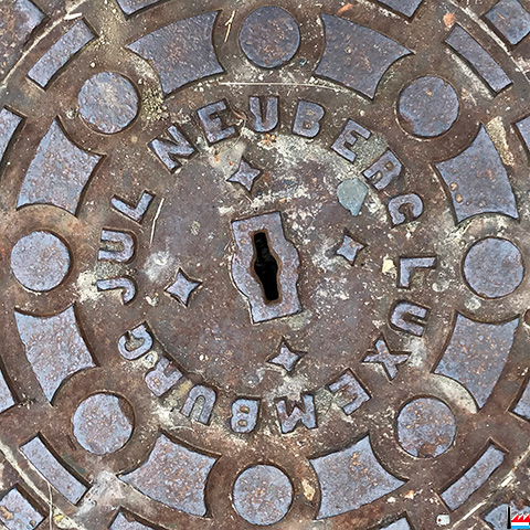 Kanaldeckel Jul. Neuberg, Luxemburg (Photo: 7.6.2020 jmo)