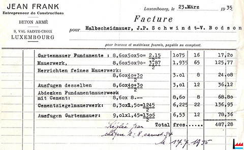 Luxembourg, le 23. März 1935 - Facture pour Halbscheidmauer, J.P. Schwindt - V. Bodson |