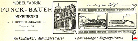 Möbelfabrik Funck - Bauer, Luxembourg (Extrait d'une facture de 2.8.1919; collection ANLux)