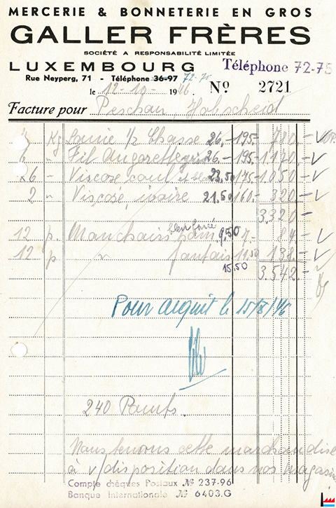 | <=10.1946 | ![]() Mercerie & Bonneterie en gros Galler frères, Luxembourg, 71 rue Neyperg, tél: |