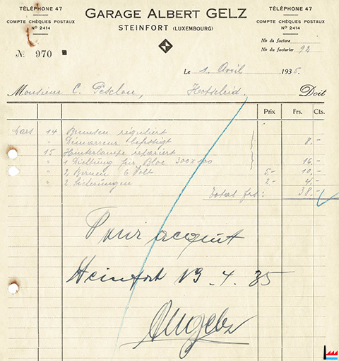 <=1932 Registre aux firmes N° 7924. Grand Garage Albert Gelz, Steinfort, garage, réparations et location d'autos. Du 25 janvier 1932