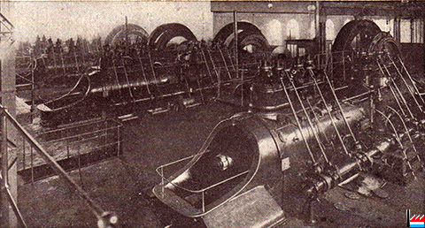 | 1907 | ![]() Usine de Rodange - Intérieur de la centrale (Collection industrie.lu) au premier plan: groupe vapo-électrique N° 6 Van den Kerchove En suite: la soufflante à vapeur La Meuse N° 5 et les 2 soufflantes à gaz Ehrhardt & Sehmer N° 3 et 4 |