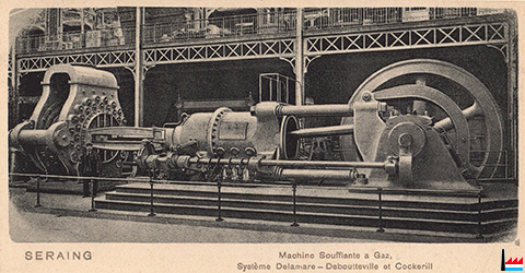 Machine Soufflante à gaz - Système Delamare - Deboutteville - Cockerill, type Simplex à 4 temps de 700 ch, - exposée à l'Exposition de 1900 au Champ-de.Mars, Paris