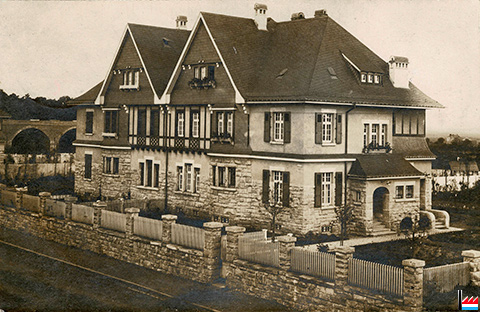 Ingenieurhäuser der Gelsenkirchener Bergwerks A.G. in der Hoeter-Straße (rue Bessemer) in Esch/Alzette - 24.8.1912 (Postkarte: Photographie von Justus Fey, Esch/Alzette, Feldstaße 2; Collection: industrie.lu)