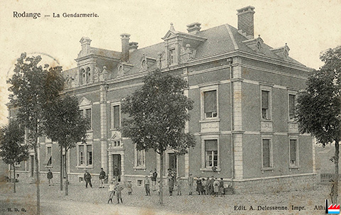 Gendarmerie Rodange - vers 1906 (Carte postale: Edit. A . Delessenne. Impr. Athus; Collection industrie.lu)