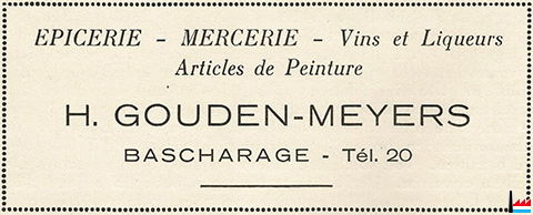 | <=1948-49 | Gouden-Meyers H., Bascharage, 115 route de Luxembourg, tél: 4227 épicerie, chaussures, peintre-déc. |