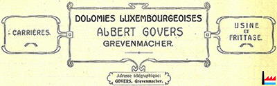 | <=1911 | Albert Govers-Steffen, Grevenmacher Exploitation de carrières et dolomie frittée |