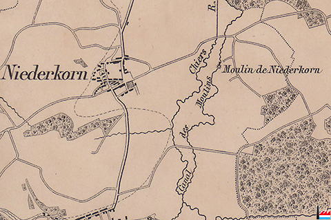 Canal des moulins, Niederkorn (Carte Jean-Baptiste Liesch - 1862)