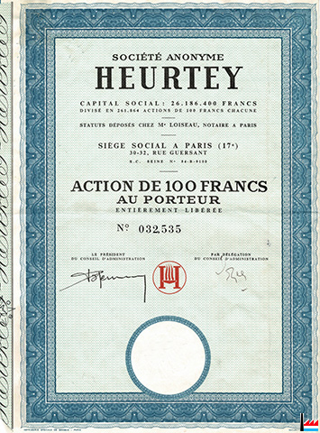 | ? | ![]() HEURTEY S.A. - Action de 100 francs au porteur Siège sociale: Paris |