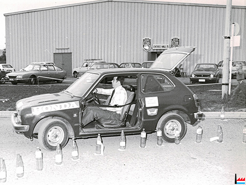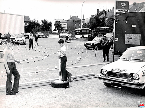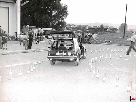 ![]() Gymkana 1976, Bascharage - Parcours tëschen dem Pompjeesbau an der Hall H5 (Photo collection: Rob Pirrotte) Premier Prix: Voiture Honda - gesponsert vun der Garage Pirrotte vu Käerjeng |
