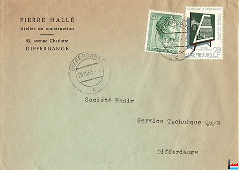 ![]() Atelier de construction Hallé Pierre - 1963 - Société Hadir (Collection: industrie.lu) 82 avenue Charlotte Differdange |