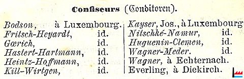 | 5. 1880 | Hastert, frères, fabricants de chocolats, Luxembourg participation à l'Exposition d'Ettelbruck |