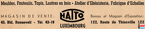 | <=1941, 1948/49 | Hatto - Kirsch Pierre 122 route de Thionville Luxembourg |