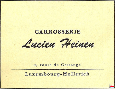 | 1949 | Carrosserie Lucien Heinen 11 route de Cessange Luxembourg - Hollerich |