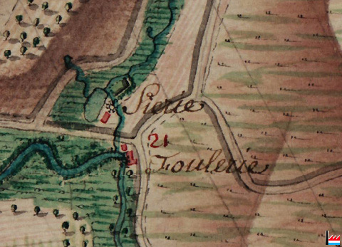 ![]() Scierie (Merschgrundmühlen) - Foulerie (Follmühle), Hobscheid - 1777 (Carte de Ferraris - Bibliothèque royale de Belgique - 2010) |