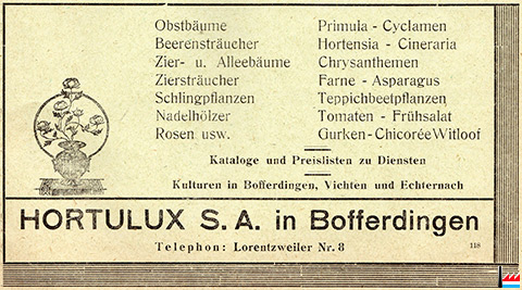 Hortulux S.A., Bofferdingen - 1928 (In "Le Coin de Terre et le Foyer" Nr.12 Dezember 1928 1. Jahrgang - Collection: industrie.lu) +