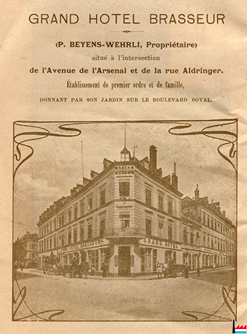 | <=1904 | Grand Hôtel Brasseur, Luxembourg, 2 avenue de l'Arsenal Propriétaire: P. Beyens - Wehrli |
