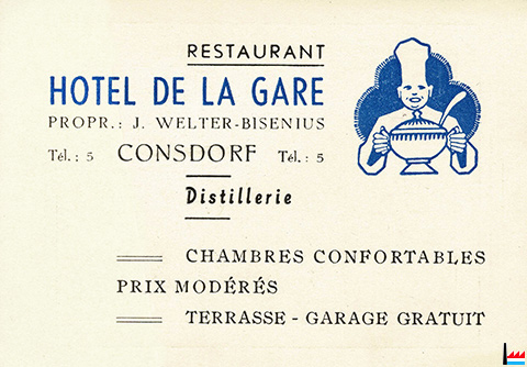 | 1960 | Hôtel de la Gare, Consdorf Prop.: Hubert Piek - Radermacher, tél: 79005 |