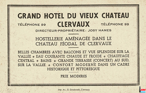 | <=1936 | Grand Hôtel du Vieux Château, Clervaux Restaurant de 1er ordre Dernier confort dans un château féodal |