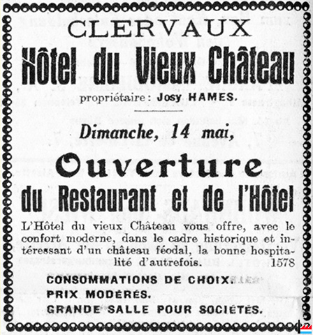 | 4.1936 | Clerf. Seit vergangenem Sonntag hat das im alten Schloss untergebrachte Burghotel seine Pforten ebenfalls wieder geöffnet. (OMZ: 10.4.1936) |