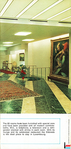 | 1966 - ? | Hôtel Eldorado, Luxembourg, 7 place de la Gare, tél: 481071 42 chambres François Reckinger |