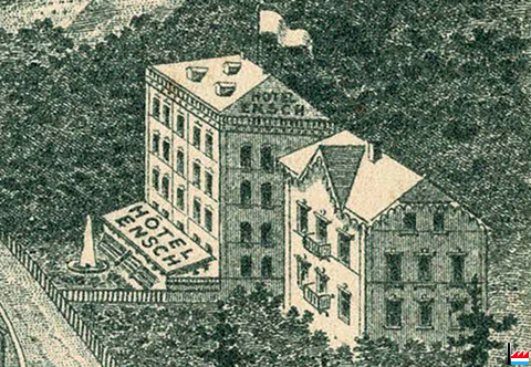 | * 1897 | Hôtel Ensch, Vianden ![]() Hôtel Ensch, Vianden - 17.8.1897 (Carte postale: collection industrie.lu) adressée à Aug.? Doucet de Tillier, Château de Tillier, Leuze Longchamps, Belgique, Province de Namur, par son fils |