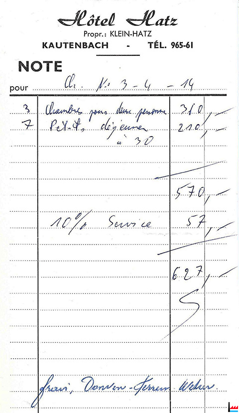 | <=1962 | Hôtel HATZ, (Propriétaire KLEIN - HATZ), Kautenbach café - restaurant - épicerie Tél: 96561 |