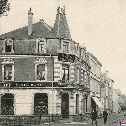 | <=1934 | ![]() Hôtel du Château, Pétange, rue de Luxembourg (Carte postale: Editeurs: Meyer & Hueber, Imprimerie-Papeterie, Pétange - Nels; Collection: industrie.lu) |