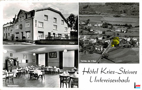 | <=1953 | ![]() Hôtel-Restaurant Kries-Steines, Untereisenbach, tél: 2 - Vallée de l'Our - <=1953 (Extrait de la carte postale: MPK N° H 797; Collection: industrie.lu) ![]() Untereisenbach - Vallée de l'Our - <=1953 (Carte postale: MPK N° H 797; Collection: industrie.lu) |