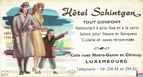 | <=1976 | Hôtel Schintgen, Luxembourg, 8 rue Notre-Dame tél: 22844 / 29450 |